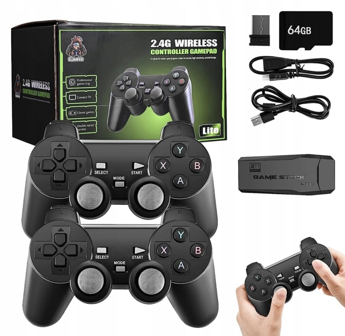 Rozmiar/ Kolor: BEZPRZEWODOWY KONTROLER KONSOLI DO GIER TV HD KONSOLA RETRO 64G