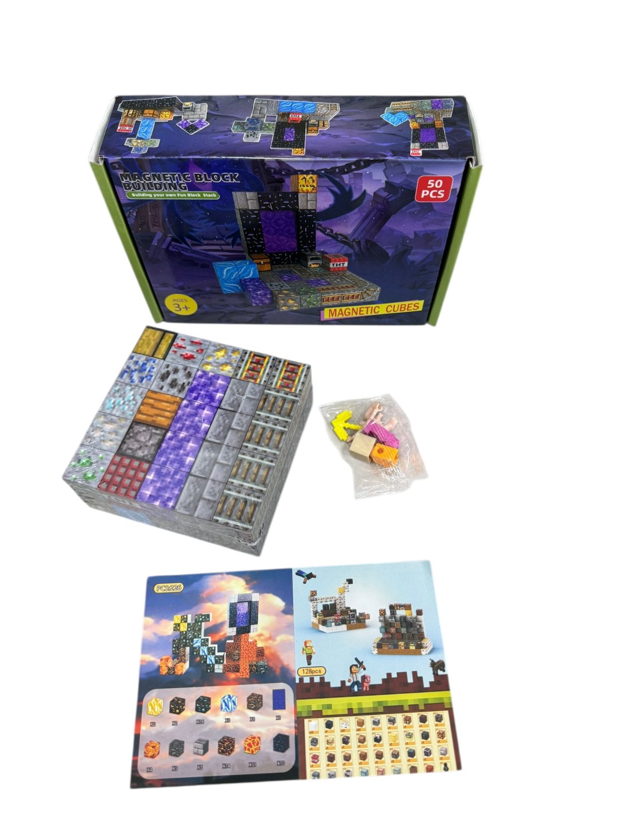 D KLOCKI MAGNETYCZNE MINECRAFT KLOCKI SZEŚCIANY 50 KLOCKÓW + 1 FIGURKI MOCNE 9822891