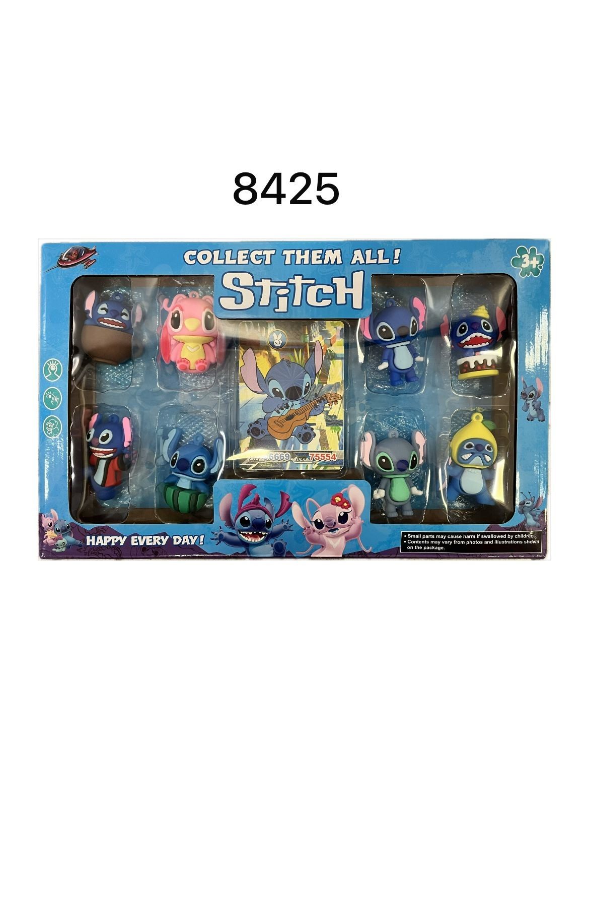 Rozmiar/ Kolor: Figurki Stich gumowe 8 szt + 8 kart