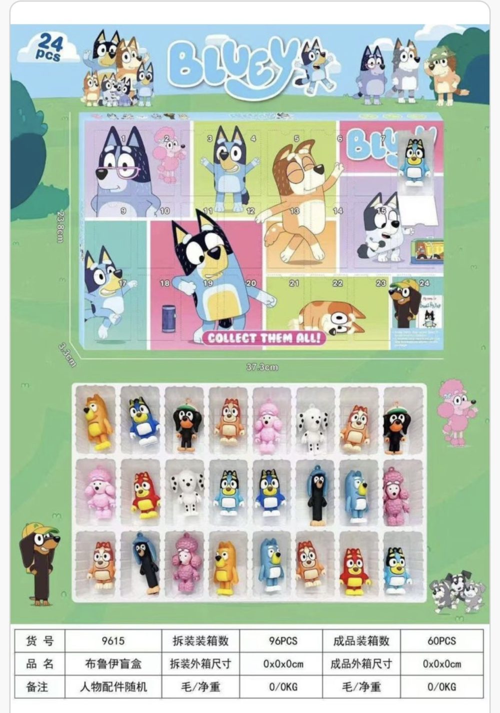 Rozmiar/ Kolor: Kalendarz Adwentowy BLUEY 24 figurki PIESKI PRZYJACIEL BINGO i reszta ekipy