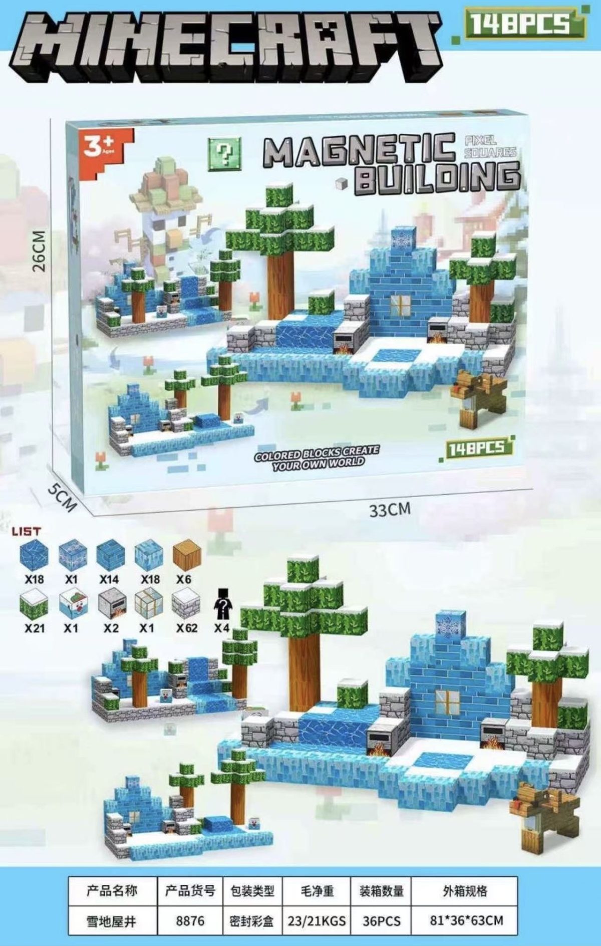 ilość Klocki Magnetyczne bloczki PIXEL sześciany konstrukcyjne 148el 4940986