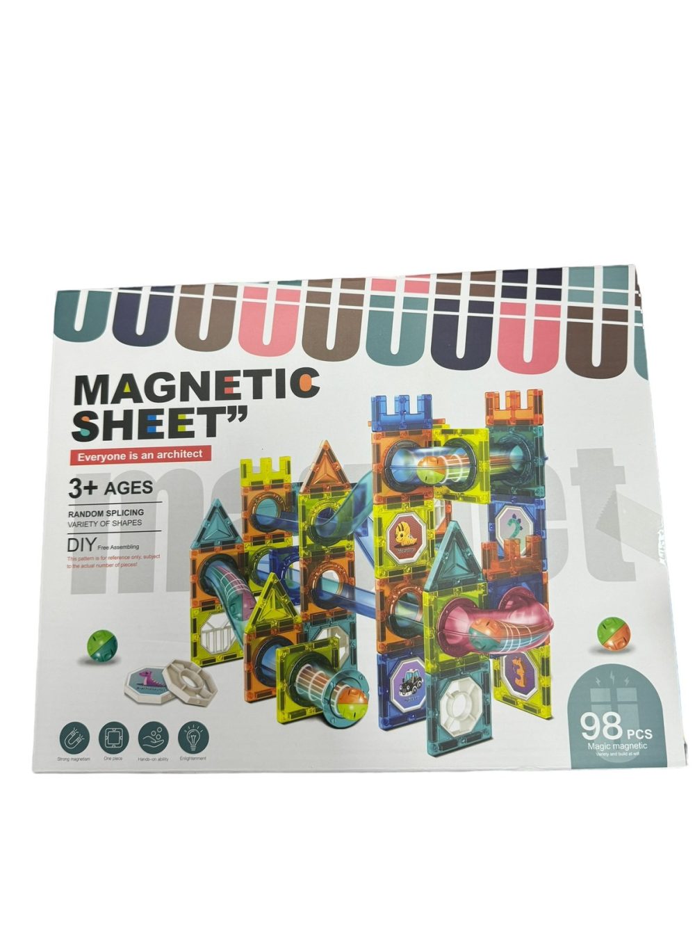 Rozmiar/ Kolor: KLOCKI MAGNETYCZNE EDUKACYJNE PANELE ZESTAW 98PCS
