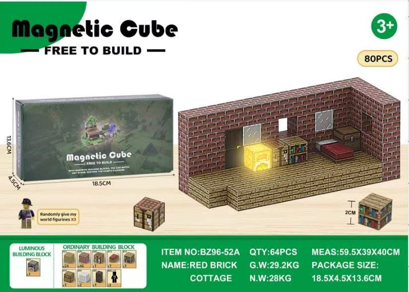 Klocki magnetyczne konstrukcyjne Minecraft 80el. sześciany bloki pixele 5168281