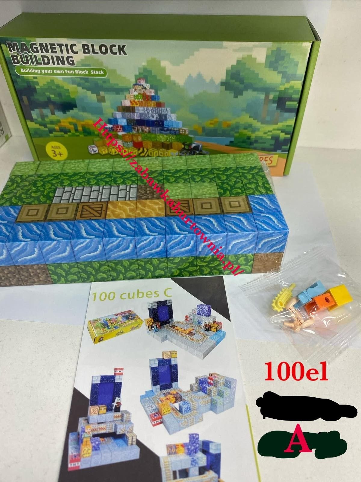 KLOCKI MAGNETYCZNE MINECRAFT KLOCKI SZEŚCIANY 100 KLOCKÓW + 1 FIGURKI MOCNE 1032611