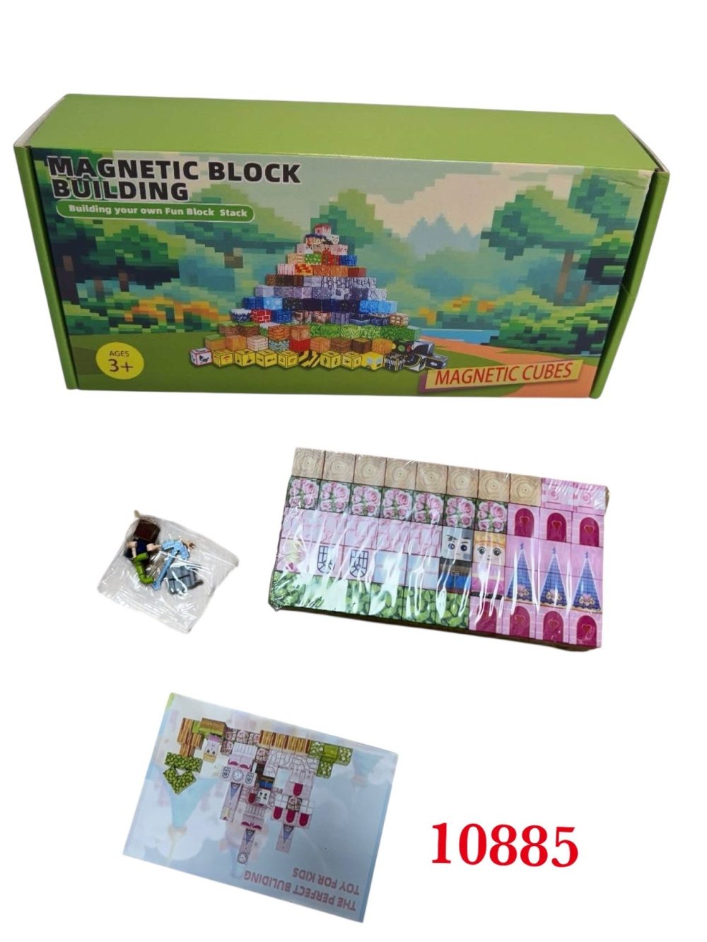 KLOCKI MAGNETYCZNE MINECRAFT KLOCKI SZEŚCIANY 100 KLOCKÓW + 2 FIGURKI MOCNE 6783023