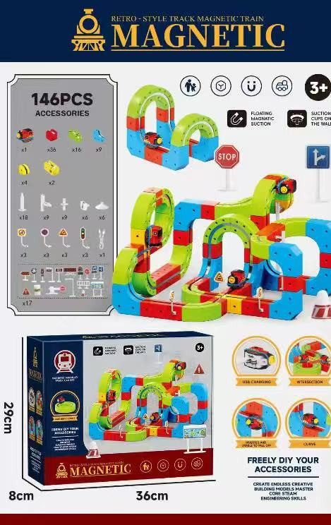 Rozmiar/ Kolor: Klocki magnetyczne tor kolejka elektryczna dla dzieci 146 elementów