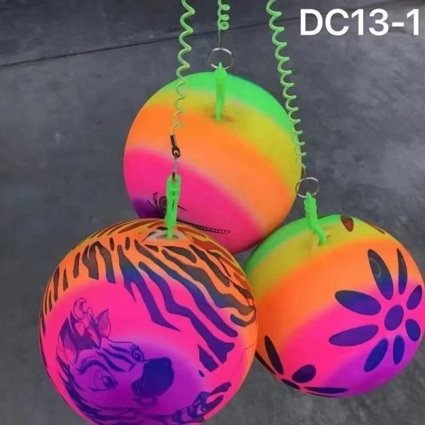 KOLOROWA PIŁKA NA SPRĘŻYNIE SZNURKU GUMOWA DO GRY 6777392