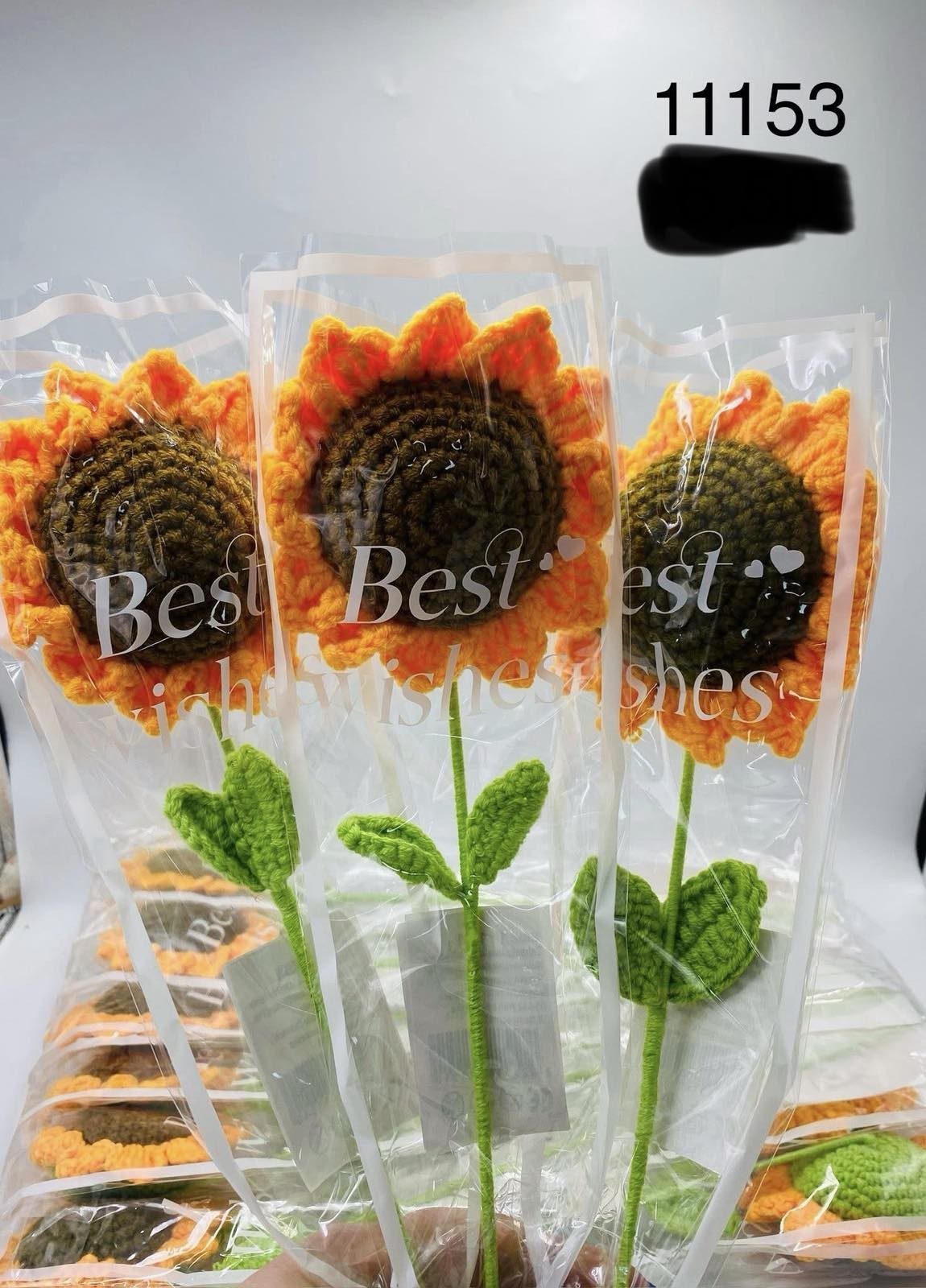 Ręcznie szydełkowany słonecznik z uśmiechem na łodydze 3218110