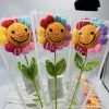 Rozmiar/ Kolor: Ręcznie szydełkowany słonecznik z uśmiechem na łodydze
