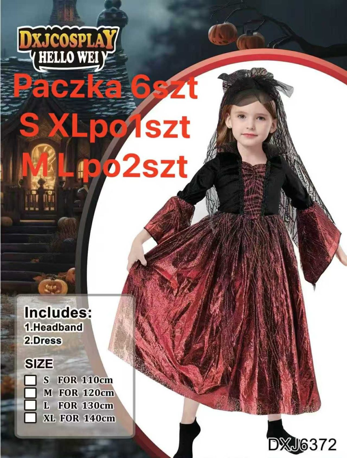 ROZMIAR S-XL PRZEBRANIE KOSTIUM SUKIENKA KROLOWAMPIRZYCA GOTYCKA NIETOPERZY WAMPIR 4516865