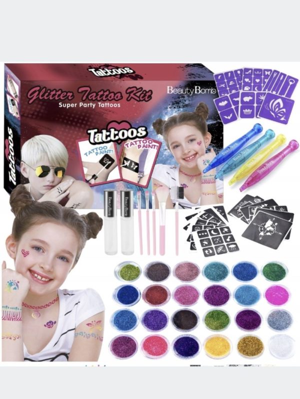 Rozmiar/ Kolor: ZESTAW DO TATUAŻY SZABLONY BROKAT KOLORY
