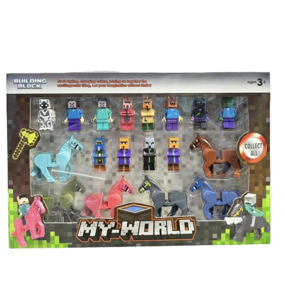 ZESTAW FIGUREK MINECRAFT + KONIE 18 szt KLOCKI FIGURKI AKCESORIA LUDZIKI 6790439